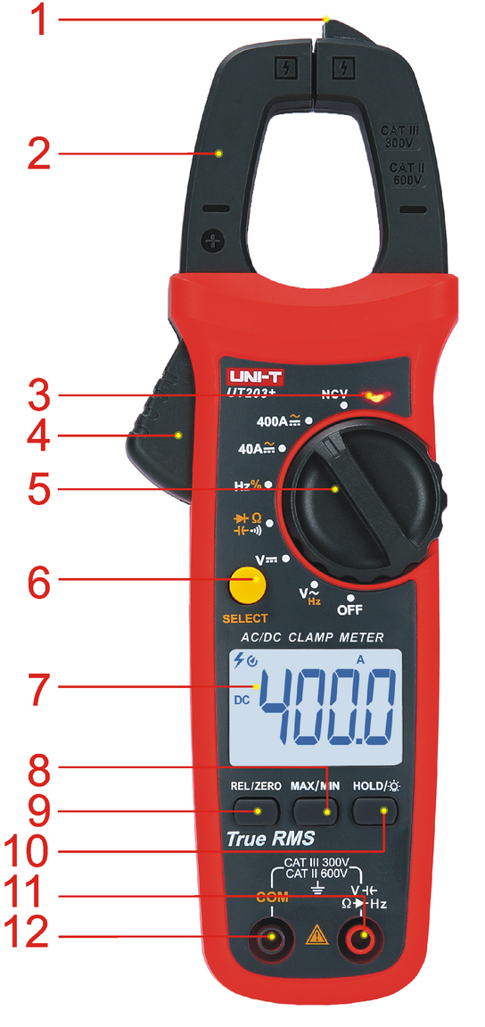 Wielofunkcyjny cęgowy miernik prądu AC/DC, napięcia, NCV