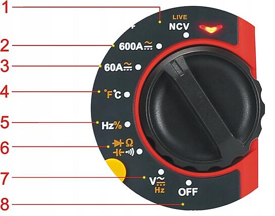- Pomiar napięcia AC: 6V / 60V / 600V