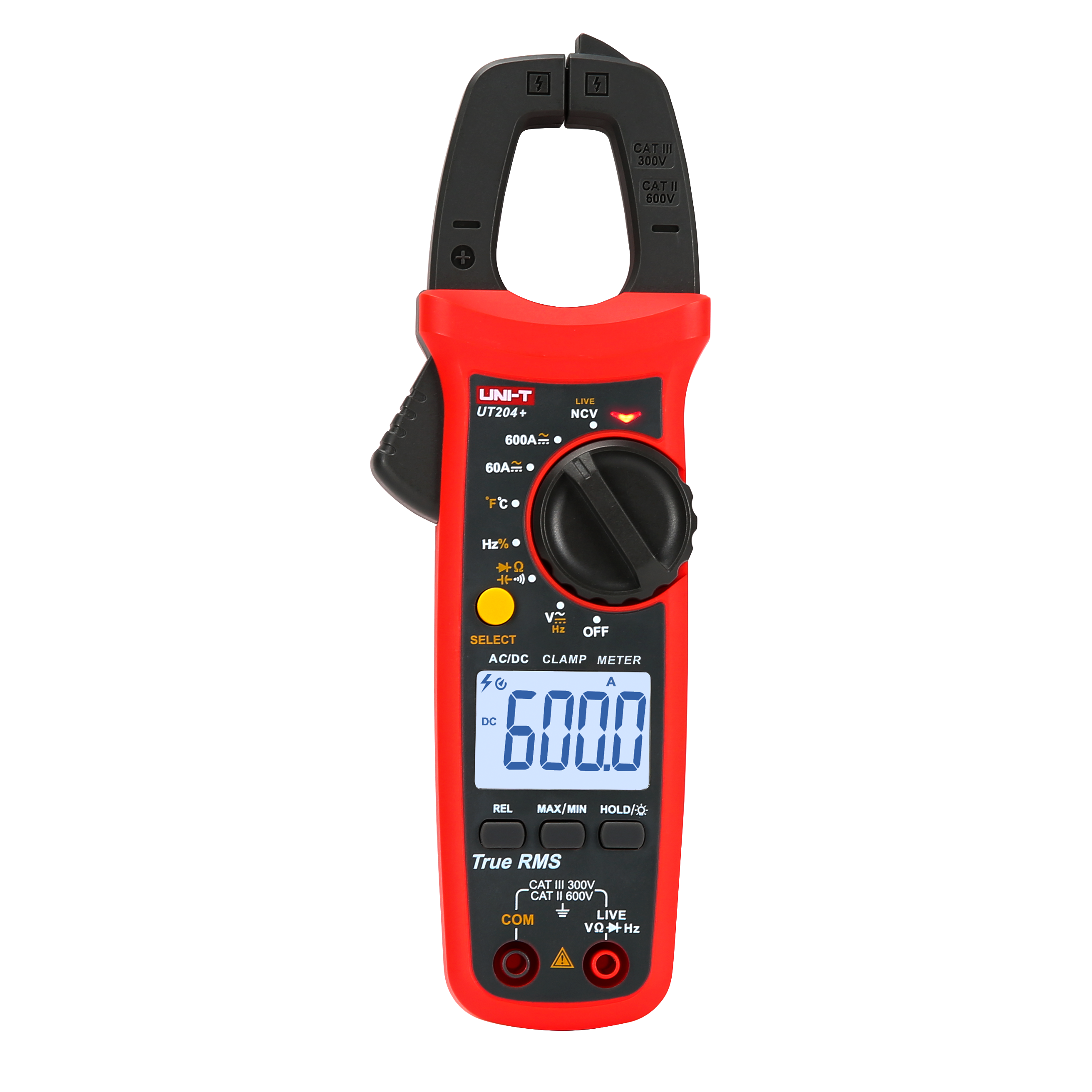 Poręczny miernik cęgowy z funkcją bezdotykowego wykrywania napięcia, posiadający duży podświetlany wyświetlacz pozwalający na pracę niemal w każdych warunkach oświetleniowych.