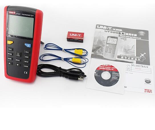 Profesjonalny cyfrowy miernik temperatury współpracuje z termoparami K, J, T, E, R, S, N. Miernik w jednym czasie mierzy temperaturę z dwóch sond jednocześnie, wyświetla dane na wyświetlaczu LED oraz przez port USB przesyła dane do programu. Urządzenie posiada USB, współpracuje z komputerem, umożliwiając zapis danych ich ocenę i interpretację.