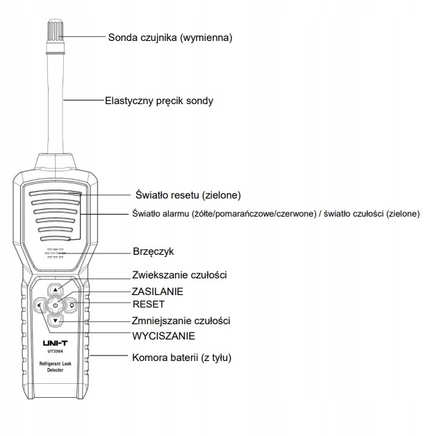 Wykrywacz nieszczelności czynników chłodniczych w instalacjach chłodniczych oraz klimatyzacji: UT336A