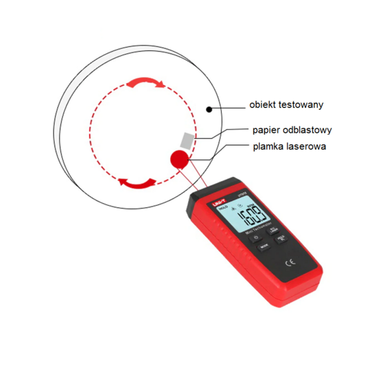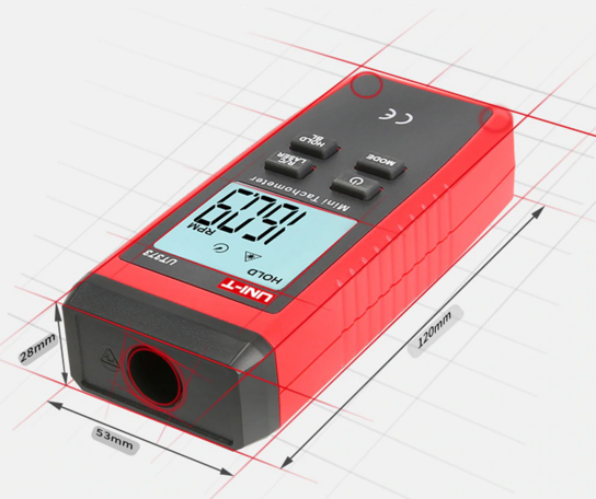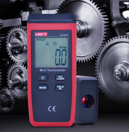 UT373 to cyfrowy obrotomierz używany do pomiaru prędkości obrotowej silników oraz innych maszyn. Urządzenie wyświetla wyniki w RPM ( 1RPM = 1 obrót na minutę) lub liczy obroty. Miernik przenośny bezpiecznie mierzy obroty za pomocą metody nieinwazyjnej.