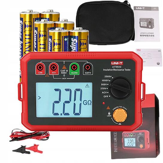 Unit UT502C jest cyfrowym miernikiem rezystancji izolacji z dodatkową funkcją pomiaru napięcia AC. Urządzenie charakteryzuje się wysoką dokładnością i stabilnością. Dzięki kompaktowym wymiarom, oraz intuicyjnej obsłudze i zasilaniu na baterie miernik ten idealnie sprawdzi się w każdych warunkach.
