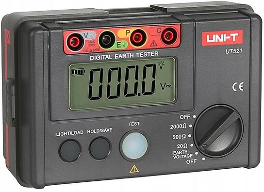 UT521 to miernik uziemień mający precyzyjne pomiary 3-przewodowe lub proste 2-przewodowe pomiary rezystancji uziemienia dla systemów energetycznych i elektrycznych, urządzeń ochrony odgromowej i systemu uziemienia wszystkich urządzeń elektrycznych.