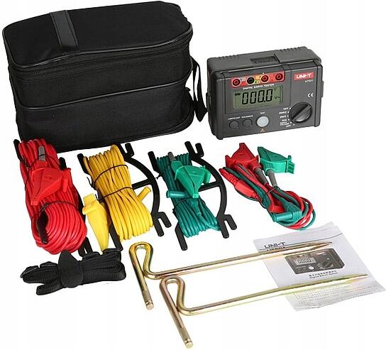 Bogaty zestaw akcesoriów do miernika rezystancji uziemienia Uni-T UT522: