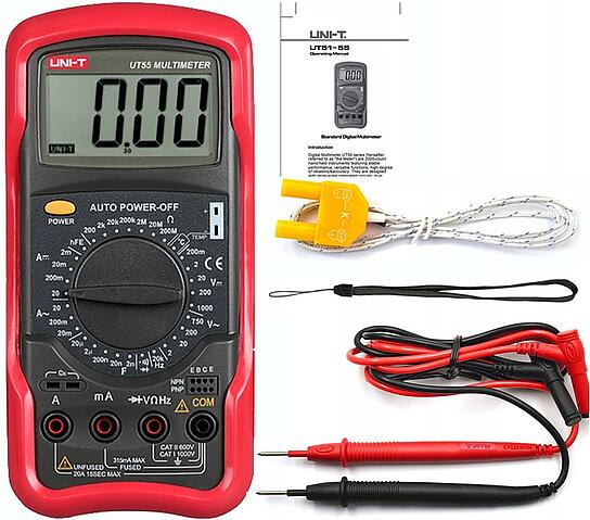 Multimetr UNI-T UT-55 jest wielofunkcyjnym przyrządem pomiarowym. Urządzenie z tej serii, charakteryzuje się dużą ilością funkcji, prostotą i wygodą użytkowania oraz niezawodnością działania. Urządzenie zostało wyposażone w etui chroniące przed uszkodzeniami