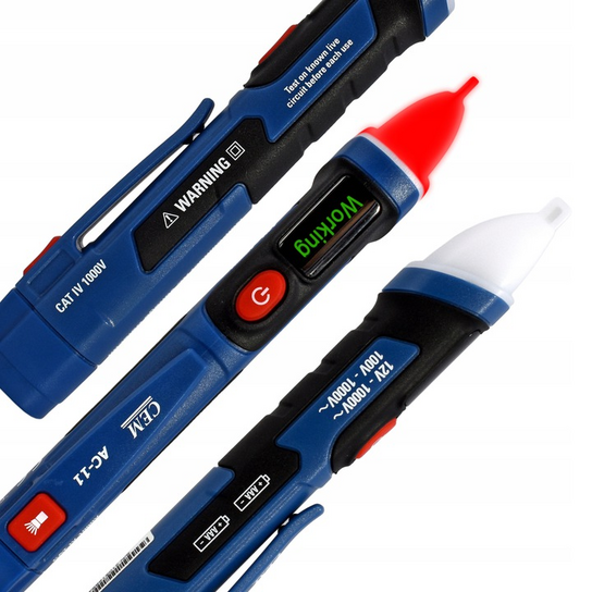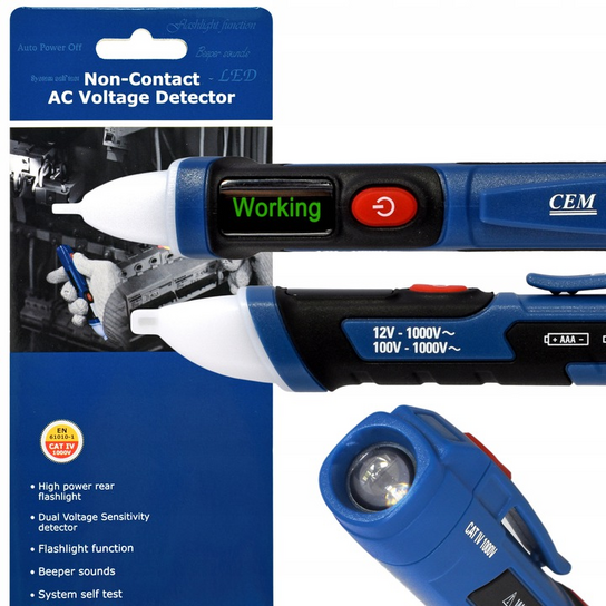 Prosty w użyciu, bezdotykowy tester napięcia przemiennego, sygnalizujący występowanie napięcia poprzez świecenie końcówki oraz emisję sygnału dźwiękowego. Dedykowany dla elektryków, pracowników serwisu, konserwatorów i właścicieli budynków do szybkiego testowania obwodów zasilających.