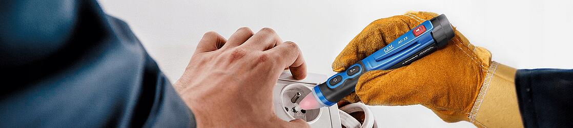 Prosty w użyciu, bezdotykowy tester napięcia przemiennego, sygnalizujący występowanie napięcia poprzez świecenie końcówki oraz emisję sygnału dźwiękowego. Dedykowany dla elektryków, pracowników serwisu, konserwatorów i właścicieli budynków do szybkiego testowania obwodów zasilających.