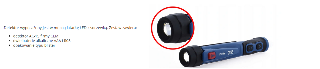 Wykrywacz przewodów, Detektor fazy - CEM NO: AC-15