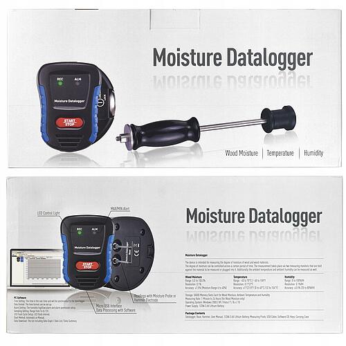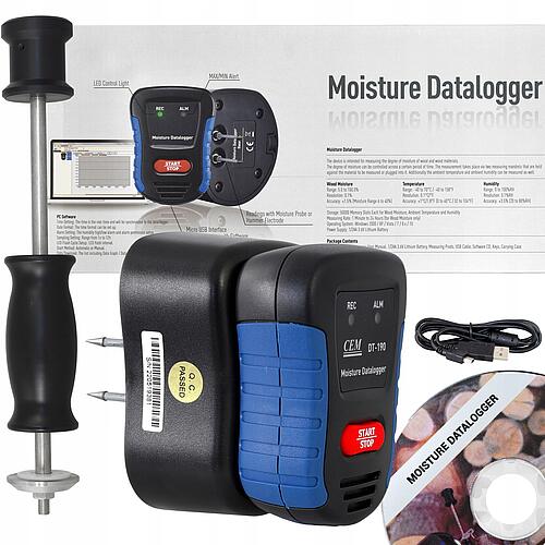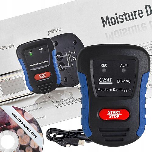 - Duża pamięć: pamięć 50 000 próbek pozwala na długotrwałe monitorowanie procesu suszenia drewna.