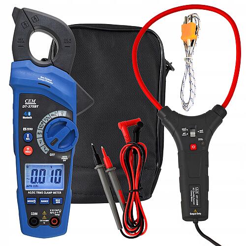 - amperomierz AC3000A - dołączane elastyczne cęgi obejmują do średnicy 160mm