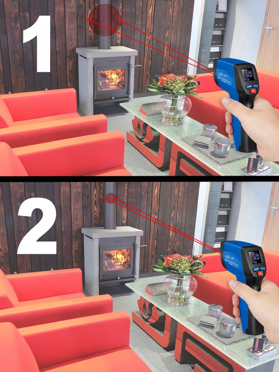 W przeciwnym przypadku pirometr będzie zbierał promieniowanie podczerwone nie tylko z przedmiotu, ale także z otoczenia (tła).