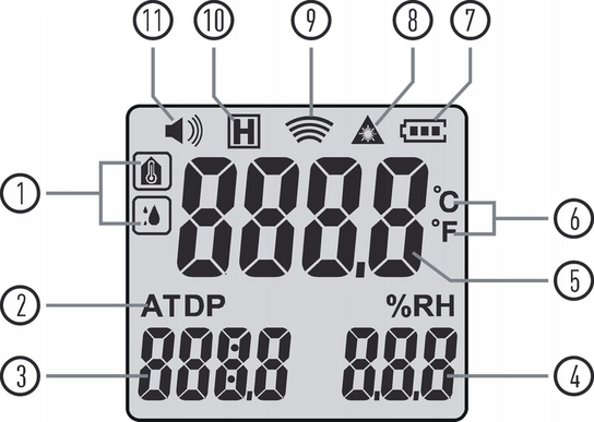 - Wartość temperatury powietrza / temperatury punktu rosy