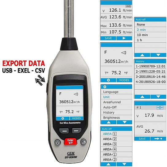 Oprócz prędkości może precyzyjnie mierzyć przepływ objętościowy i temperaturę powietrza. Kompaktowa konstrukcja systemu czujników, w połączeniu z wysuwaną sondą teleskopową, umożliwia wykonywanie pomiarów nawet w miejscach szczególnie trudno dostępnych.