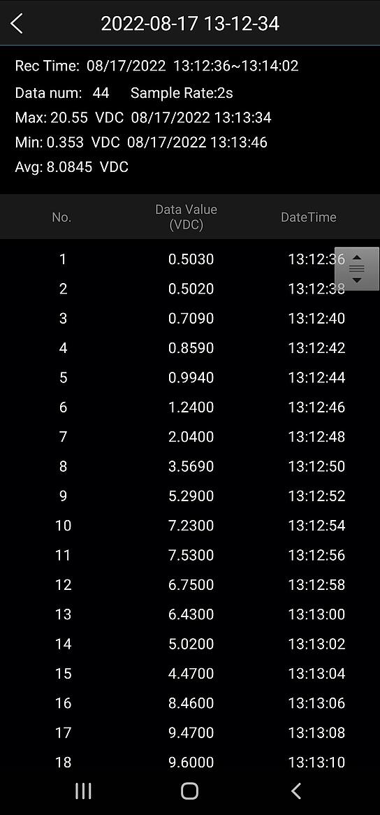 Aplikacja pozwala na rejestrację na żywo mierzonych przez DT-960BT wartości, ustawienie progu alarmu dolnego i górnego. Wyniki w formie plików CSV lub zrzutów ekranu PNG zapisywane są do plików, które można później przeglądać lub wysyłać e-mailem.