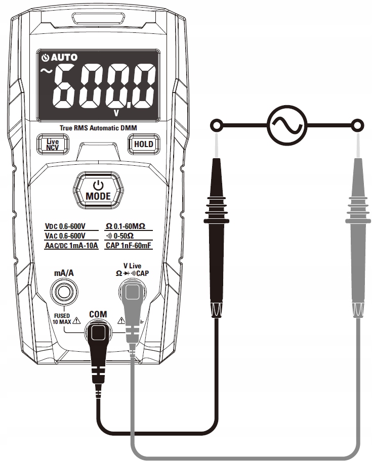 - napięcie zmienne AC: 6.000V/60.00V/600.0V