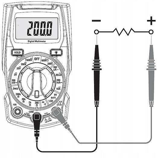 - Rezystancja: 0,0Ω ... 2.00MΩ rozdzielczość 0,1Ω