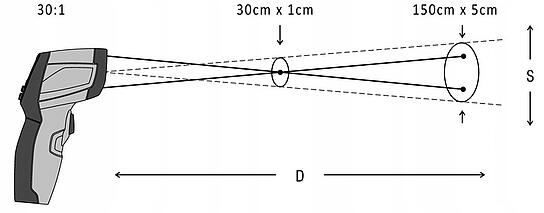 Do wykonania prawidłowego pomiaru konieczne jest, aby pole pomiarowe pirometru nie wychodziło poza przedmiot, którego temperaturę mierzymy.