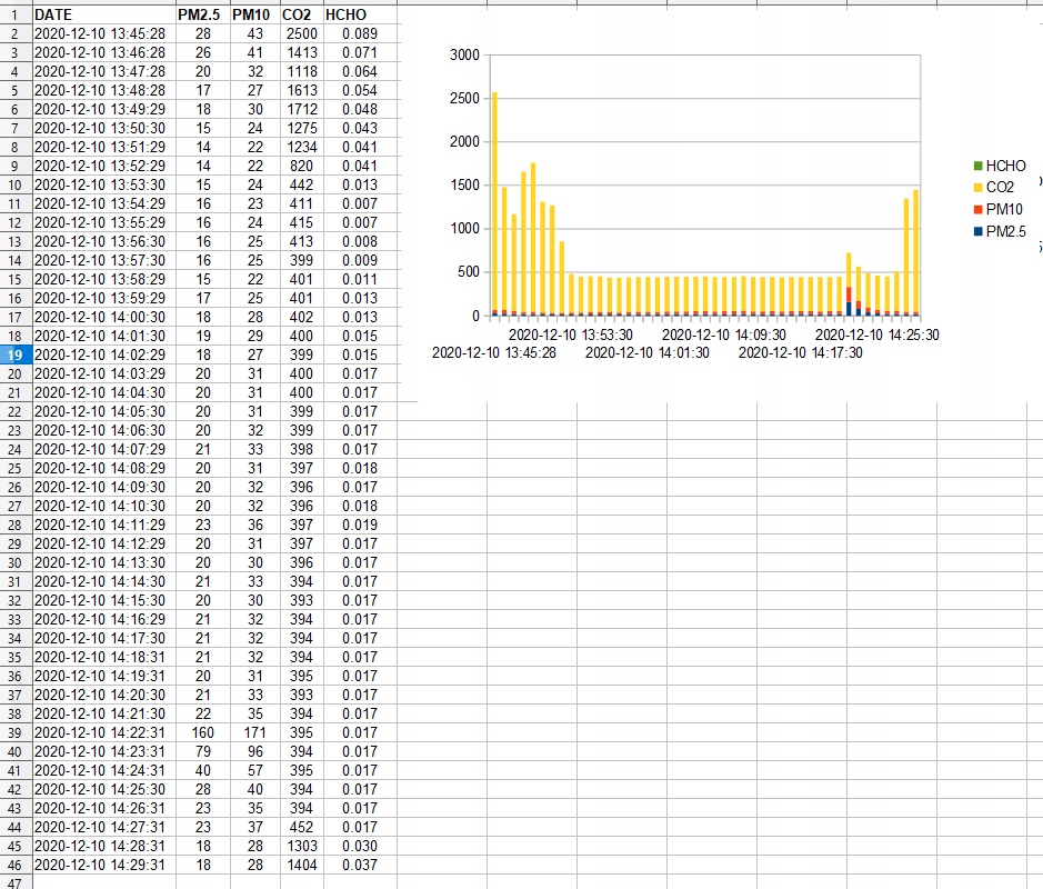 - Pomiar PM2.5, PM10, HCHO, CO2