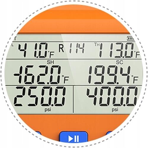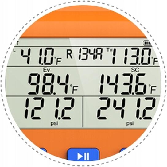 Duży czytelny wyświetlacz pozwala na szybki odczyt ciśnienia i temperatury. Są konfigurowalne pod wszystkie popularne gazy chłodnicze. Wyświetlacze posiadają podświetlenie dlatego idealnie nadają się do miejsc słabo oświetlonych. Pamięć minimalnych i maksymalnych wartości.