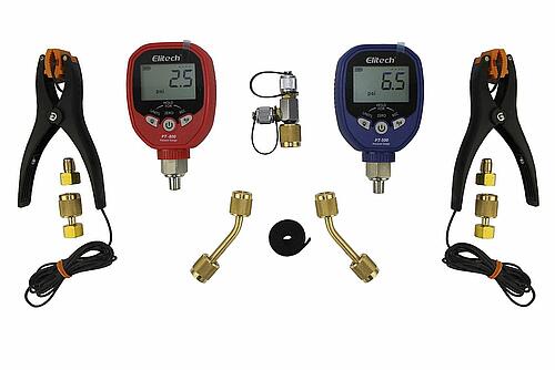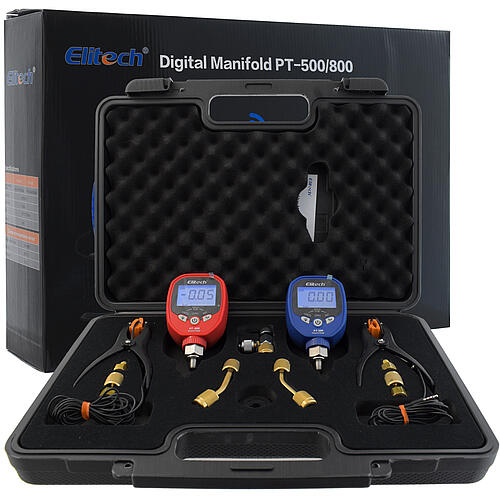 Tester układu chłodniczego/klimatyzacji, służy do pomiaru różnicy ciśnienia miedzy ciśnieniem atmosferycznym a cienieniem czynnika chłodniczego. Umożliwia zdiagnozowanie potencjalnej usterki układu poprzez porównanie ciśnienia strony wysokociśnieniowej oraz ciśnienia strony niskociśnieniowej ze specyfikacją układu klimatyzacyjnego.