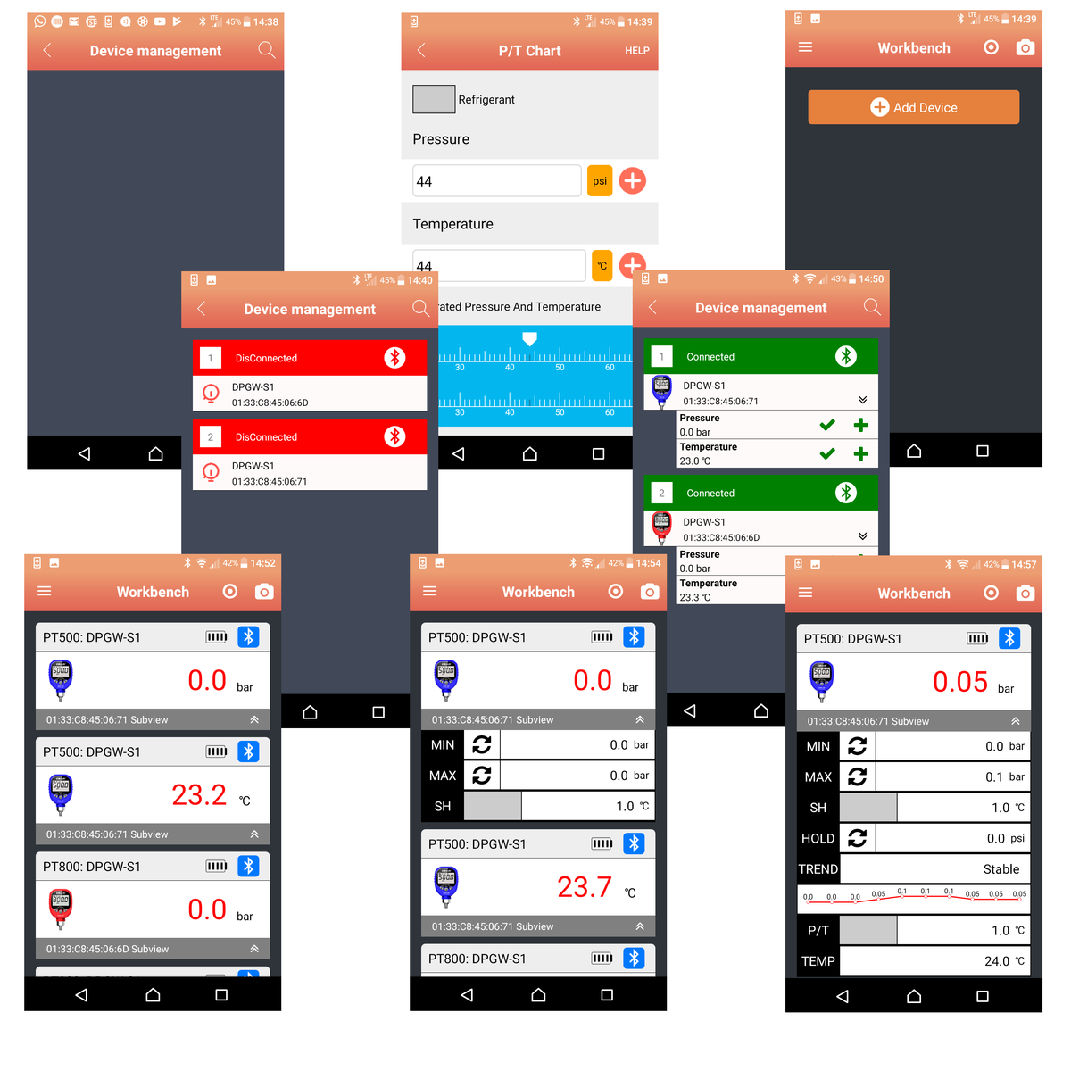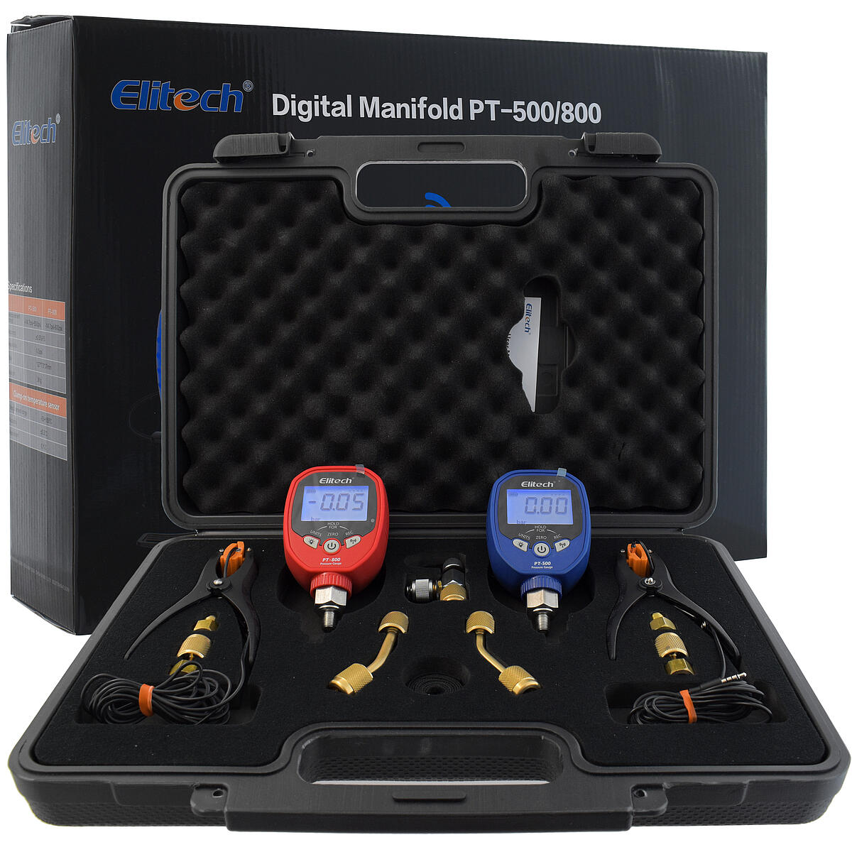 Wyposażenie standardowe | bezprzewodowy cyfrowy miernik ciśnienia PT-500 bezprzewodowy cyfrowy miernik ciśnienia PT-800 2szt czujnik temperatury zacisku 1/4 adapter męski 1/4 adapter żeński wygięty adapter wspólny przegub 2szt zaczep i pętla |