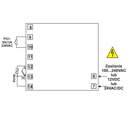 Wejście: | Czujniki rezystancyjne: PTC, Pt100, Termopary: J, K, R, T | |