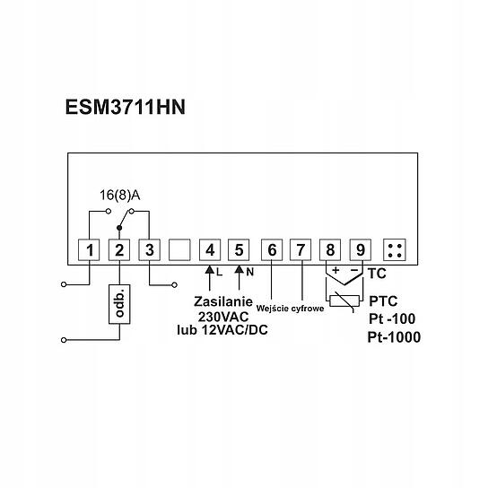 Wejście: | Czujniki rezystancyjne: PTC, Pt1000 Termopary: J, K |