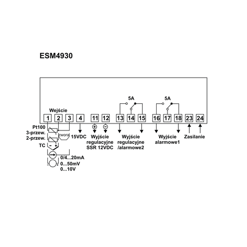 - 3 wyjścia: regulacyjne + 2 alarmowe