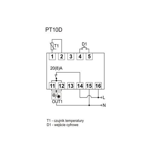 Regulator PT10D to produkt z cyfrowym odczytem temperatury oraz funkcją kalibracji wskazań, wyposażony w wyjście regulacyjne przekaźnikowe dużej mocy 20A o maksymalnym obciążeniu rezystancyjnym 4500W. Tryb pracy – grzanie lub chłodzenie – konfigurowany przez czytelne menu. Producent zastosował metodę regulacji ON-OFF z regulowaną histerezą.