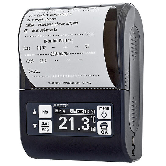 Funkcje: | wydruk raportów bieżących, wydruk raportów z dostawy, wydruk raportów historycznych, rejestracja ciągła lub kursów kopiowanie danych na nośniki USB współpraca ze smartfonem (Bluetooth) wysyłanie danych na serwer powiadamianie SMS raporty PDF na e-mail lokalizacja GPS automatyczna zmiana czasu na letni, strefy czasowe alarmy temperatury i otwarcia drzwi sygnalizacja dźwiękowa edycja danych użytkownika na wydruku hasło dostępu do menu serwisowego przywracanie ustawień fabrycznych, usuwanie danych |