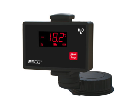 Bezprzewodowy wyświetlacz temperatury rejestratora DR202, montowany w kabinie kierowcy. W trakcie transportu umożliwia podgląd temperatury na zabudowie, uruchamia alarm dźwiękowy temperatury, posiada komendy: START/STOP (dostawy. kursy)