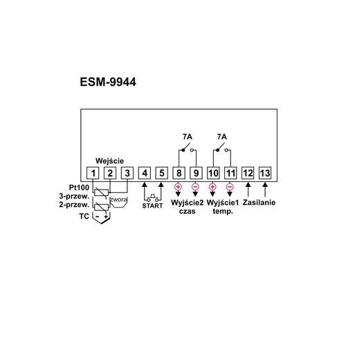 Wyjście sygnalizacyjne ukończenia procesu grzania: | przekaźnikowe rozłączne SPST 7A 250V~, trwałość 105 cykli lub półprzewodnikowe SSR max. 12V= 20mA |