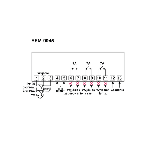 Wyjście sygnalizacyjne ukończenia procesu grzania: | przekaźnikowe rozłączne SPST 7A 250V~, trwałość 105 cykli lub półprzewodnikowe SSR max. 12V= 20mA |