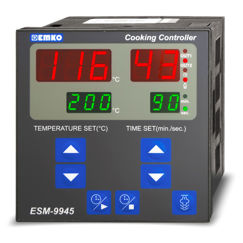 Regulatory współpracują z czujnikami rezystancyjnymi Pt100 oraz termoparami J lub K. Wybór rodzaju czujnika temperatury dokonuje się przy zamówieniu kierując się sposobem zamawiania. Dostępna jest regulacja typu: załącz/wyłącz (ON-OFF) z regulowaną histerezą lub proporcjonalna. Start/stop odliczania czasu grzania jest uruchamiany z klawiatury regulatora. Zakończenie procesu grzania jest sygnalizowane wbudowanym sygnalizatorem dźwiękowym (buzzerem) oraz wyjściem przekaźnikowym. Przyrządy wyposażone są w dwa podwójne wyświetlacze temperatury i czasu. Regulator ESM9945 wyposażony jest dodatkowo w trzecie wyjście przekaźnikowe do załączania genaratora pary. Wyjście to jest uruchamiane dodatkowym klawiszem na czas określony w menu (1...99s).