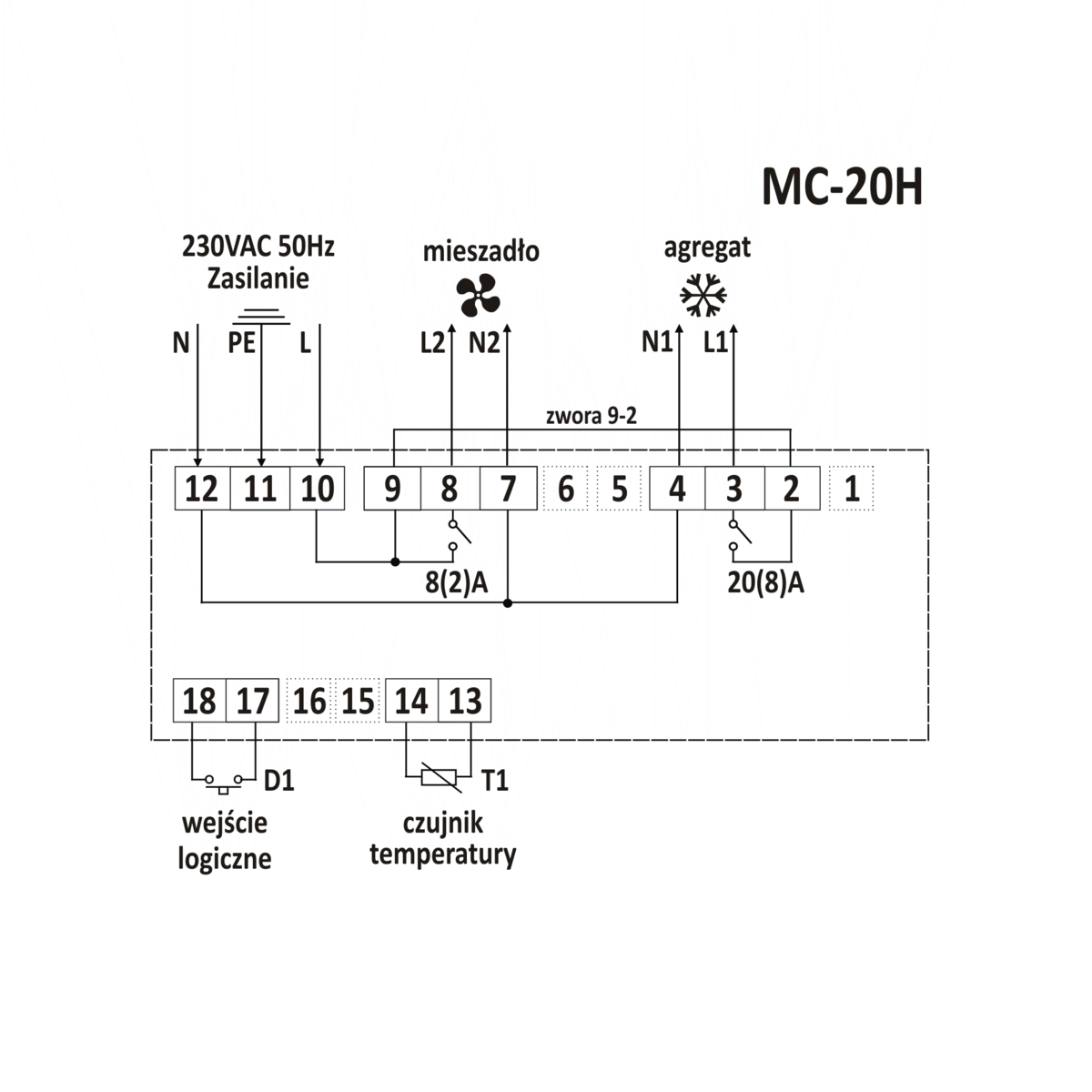 Sterownik MC-20H przeznaczony jest do kompleksowej obsługi schładzalnika mleka. Pozwala przechowywać mleko w określonej temperaturze, sterując odpowiednio pracą agregatu chłodniczego i mieszadła.