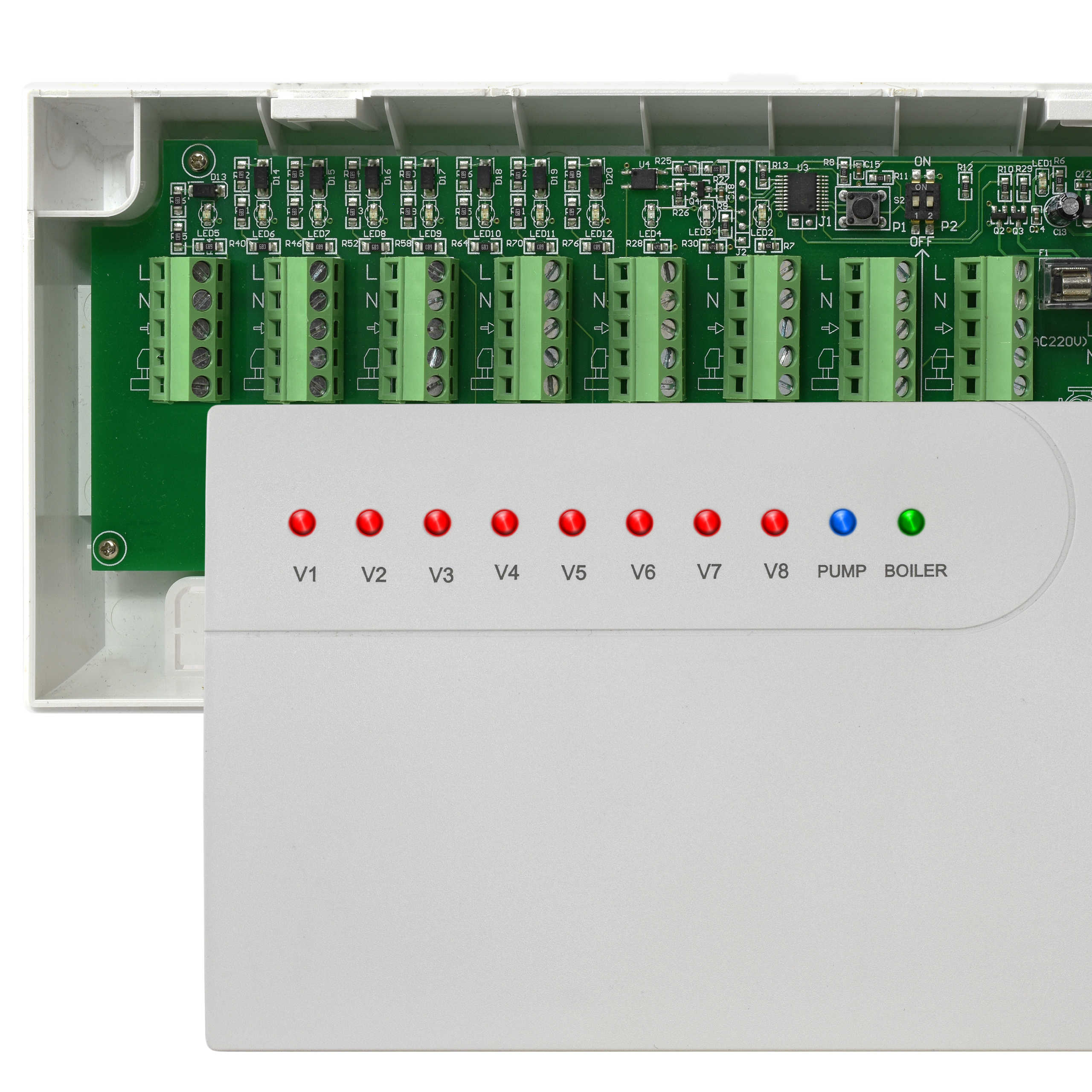 Listwa może obsłużyć do 8 obwodów i do 8 termostatów pokojowych. Dla każdego obwodu jest sygnalizacja stanu wyjścia, wysokiej jakości złącza gwarantują pewny styk i komfortowe podłączenie przewodów.