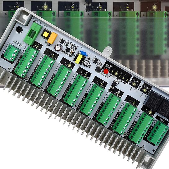Listwa może obsłużyć do 8 obwodów i do 8 termostatów pokojowych. Dla każdego obwodu jest sygnalizacja stanu wyjścia, wysokiej jakości złącza gwarantują pewny styk i komfortowe podłączenie przewodów.