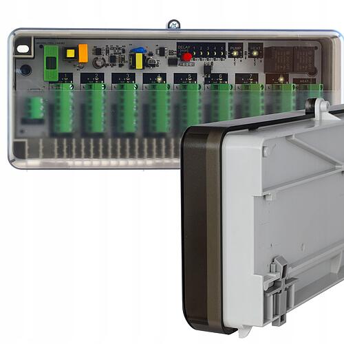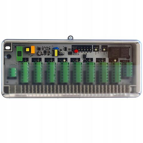 Listwa może obsłużyć do 8 obwodów i do 8 termostatów pokojowych. Dla każdego obwodu jest sygnalizacja stanu wyjścia, wysokiej jakości złącza gwarantują pewny styk i komfortowe podłączenie przewodów.