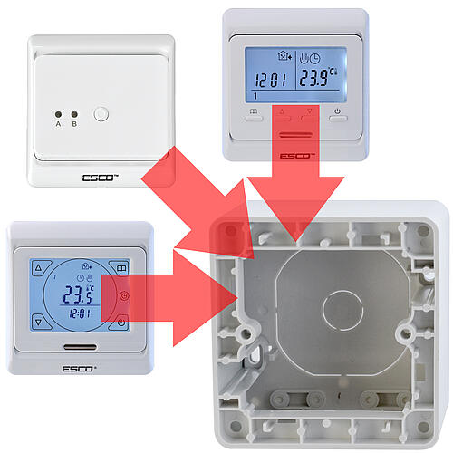 Sterownik możemy zamontować podtynkowo za pomocą standardowej puszki fi 60 mm lub natynkowo wykorzystując puszkę do montażu natynkowego.