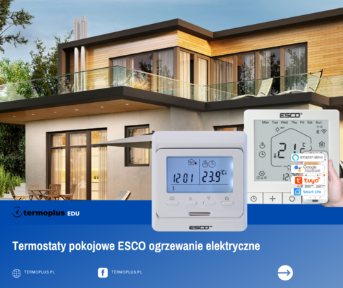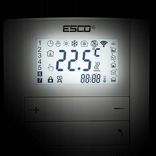 Termostat pokojowy TC410 WiFi marka ESCO może pracować z 2 czujnikami temperatury – sterownik ma wbudowany czujnik powietrza oraz z dodatkowym czujnikiem podłogi NTC. Dzięki czemu steruje temperaturą podłogi, powietrza lub obydwoma na raz.