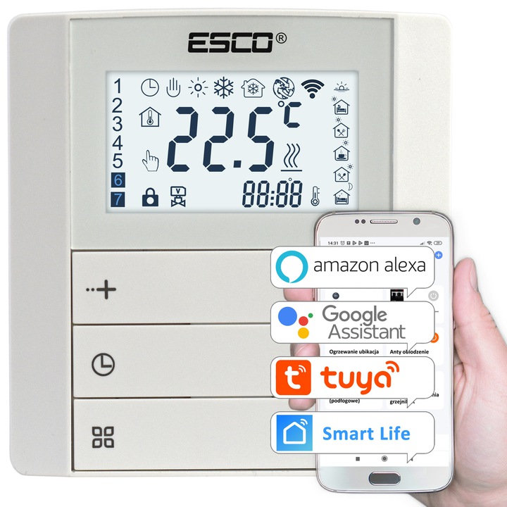 Darmowa aplikacja TUYA SMART oraz SMART LIFE dostępna w sklepie GOOGLE PLAY, pozwala na definiowanie scenariuszy, korekcji temperatury względem prognozy pogody lub naszej lokalizacji. Dodatkowym atutem jest możliwość ustawienia harmonogramu z poziomu telefonu, dzięki czemu jest to intuicyjne i przyjazne użytkownikowi.