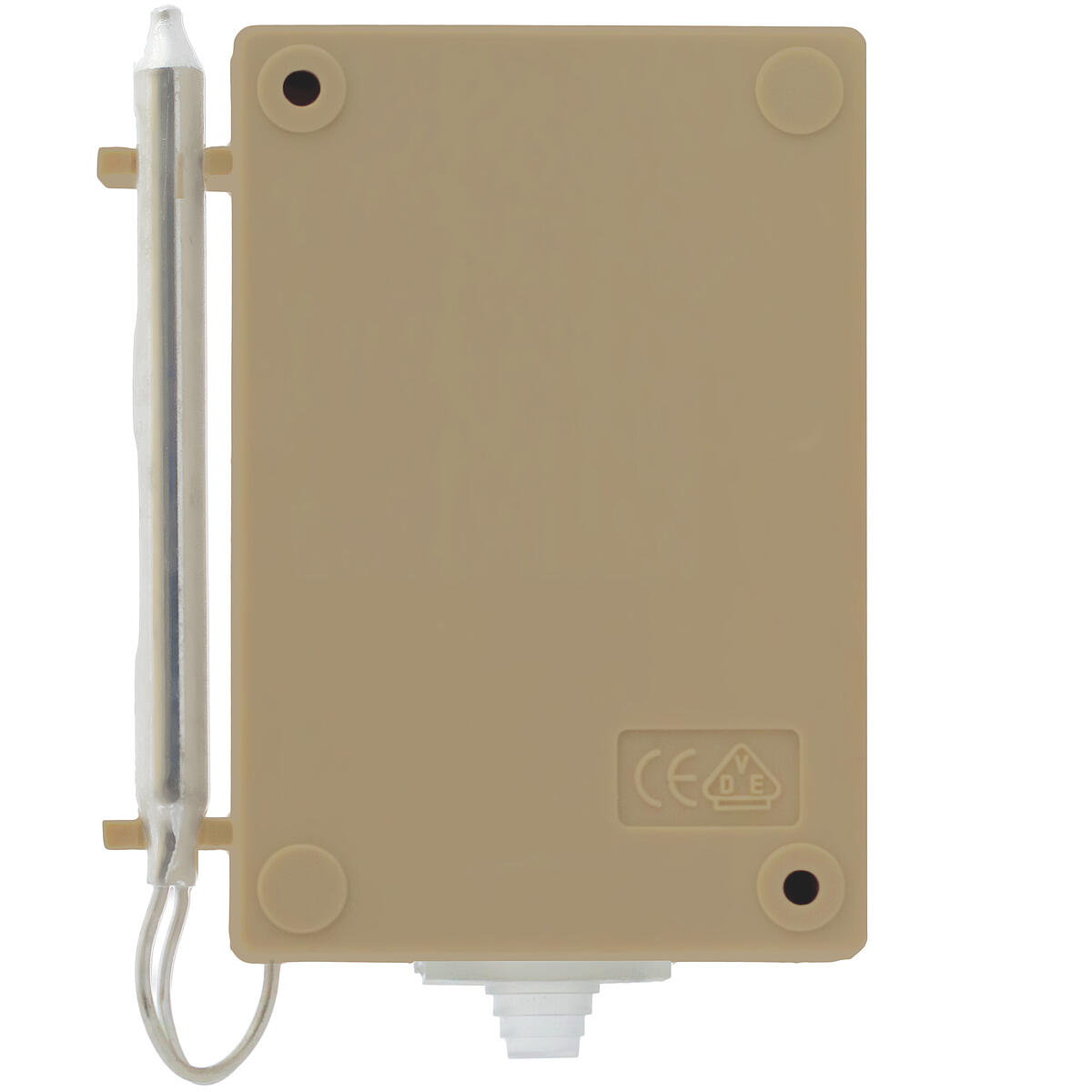 Termostaty z wbudowaną głowicą pomiarową z elementem cieczowym (zasada pomiaru wykorzystująca rozszerzalność materiałów). Wyposażone są w styki typu SPDT (pracują na grzanie lub chłodzenie). Posiadają uszczelnioną obudowę zabezpieczającą przed wpływem podwyższonej wilgotności. Przeznaczone do sterowania w instalacjach chłodniczych, sterowania wentylatorami, ogrzewaniem, klimatyzatorem itp. Montaż naścienny.