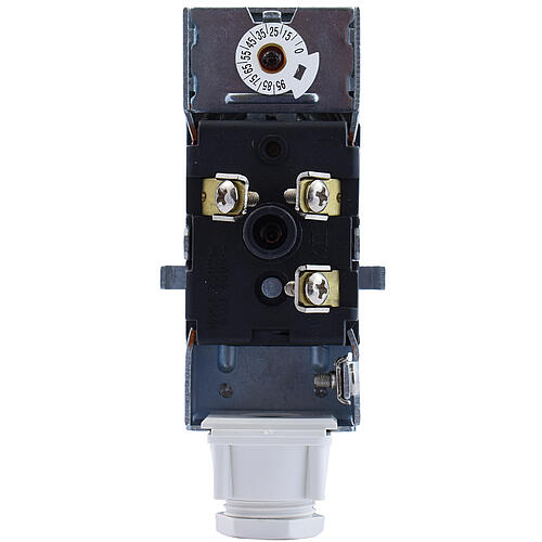 Przylgowy termostat z termoelementem cieczowym. Ciepło przekazywane jest do termostatu za pomocą tylnej, metalowej ścianki. Realizuje pomiar czynnika w rurze. Mocowany na rurach o średnicy w zakresie od 2/3 do 4 cala za pomocą dołączonej sprężyny. Wyposażony w styki typu SPDT. Posiada uszczelnioną obudowę zabezpieczającą przed wpływem podwyższonej wilgotności. Przeznaczony jest do sterowania w instalacjach grzewczych, szczególnie przydatny do automatycznej regulacji bojlerów, sterowania pompami itp. Ustawiany wewnątrz wkrętakiem, po zamontowaniu obudowy nie ma możliwości zmiany nastawy.