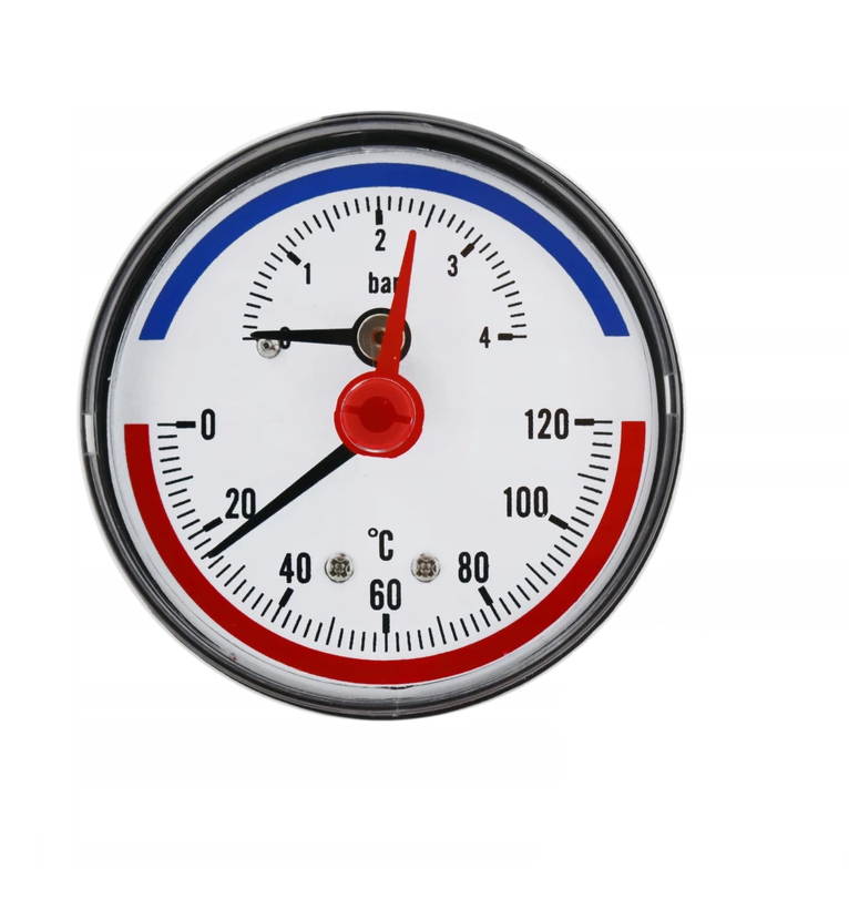 tTermomanometr 120°C, 4 bar z gwintem tylnym 1/2" redukcja 1/4"