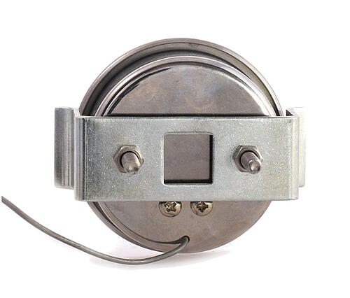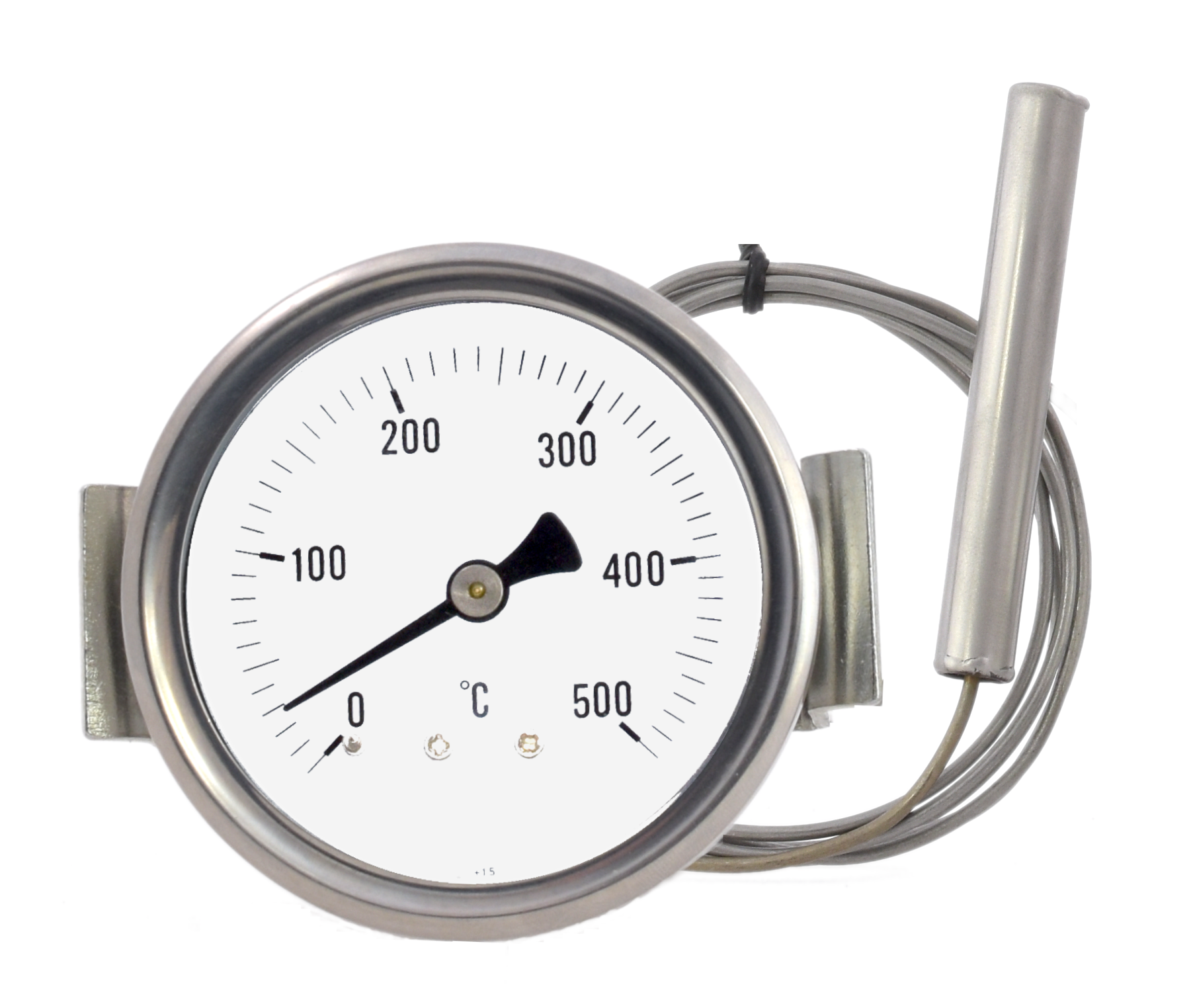 Termometr tarczowy do pomiaru temperatury cieczy, gazów i ciał stałych. Pomiar temperatury dokonywany jest przez głowicę pomiarową na końcu rurki kapilarnej.